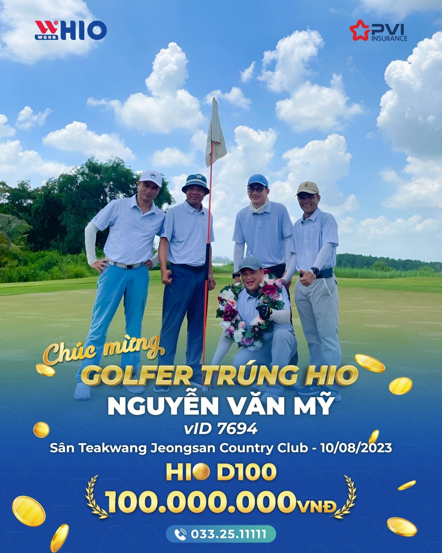 Golfer Nguyễn Văn Mỹ nhận thưởng 100 triệu đồng cho cú Hole In One của mình. Ngày 10/08 vừa qua trên sân Taekwang Jeongsan Country Club, golfer Nguyễn Văn Mỹ vID 7694 đã có cú Hole In One đẹp mắt tại hố số 14 bằng gậy sắt số 6 với khoảng cách 155 yards.